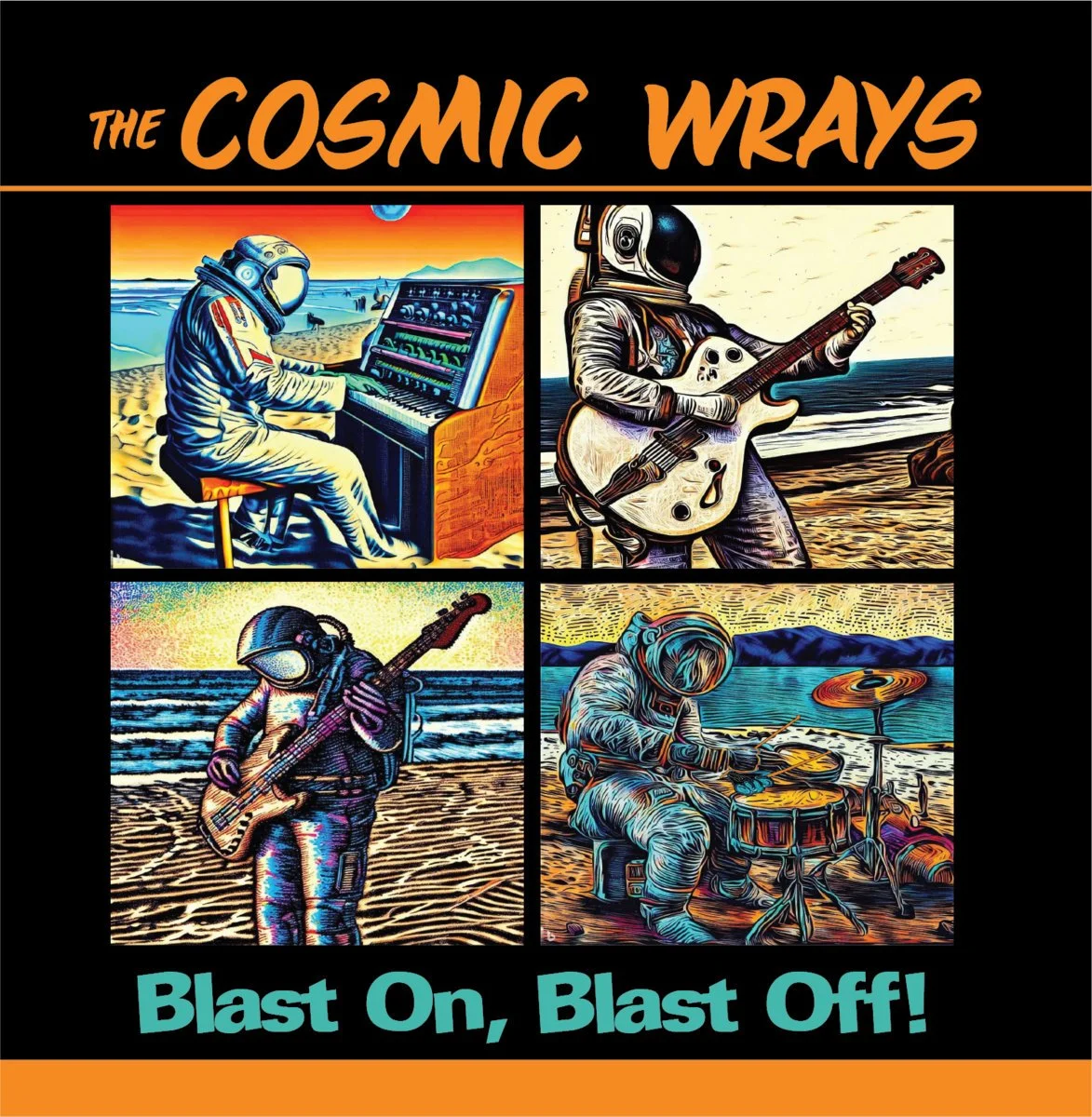 The Rock/ Pop subgenre “Surf Music,” is as varied as any other major genre with groups influenced by traditional and contemporary aspects of the form from classic garage rock 60’s styles to modern electronica, horror, and goth, theatrical and certainly island flavors of reggae, exotica and tiki. The Snohomish County based quartet The Cosmic Wrays have carved out a niche of their own delivering what they call “Sci-Fi Surf.” The instrumental band has release the third chapter of an emerging discography Blast On, Blast Off in September of 2023. Formed in 2018 by drummer Crash Gordon (Dave Howard) who enlisted the skills of like-minded veteran players who also have a background in the high tech and aeronautics industry. Ramjet Vortex (Van Ramsey) on Organ, with guitarist Race DeLorean (Ron Averill) and Andromeda Cobra (Eric Mundt) on Bass. The ambitious collection of 15 tracks are composed as a soundtrack on a journey across a sonic galaxy. Each thoughtful and dynamic composition conjuring up images from all aspects of the sci-fi world of film, comics, gaming, and literature, but with a touch beachside fun in the sun not far behind. Opening track “Codename: Longboard,” mixes James Bond theme elements with a beach boogaloo beat. From there the mission cruised from one adventure to the next employing loads of guitar effects like sitar, fuzz, Wah, Wah and of course loads of reverb, punchy grooves and retro keyboard patches all designed to punctuate the well-constructed hooks and riff lines that burrow into you head like inter galactic ear worms. The titles guide you to build your own story lines that range from comical to outrageous. “Shoulda Turned Left at Alpha,” has Buggs bunny and Marvin the Martian rolling down the cosmic highway and encountering plenty of asteroids to dodge. “surf Dog from the K9 Nebula,” is long lost TV theme, and “Space Walk,” is a groovy dance number for those gals in moon boots and tin foil bikinis. Crash Gordon shows off his speed around the kit on the Title track and the danger ramps up on the dramatic number “The Cosmic Peril.” The crew takes a respite from the warp speed drive, settling in nicely on the laid back number “Sea Of Tranquility,” then quickly get back to work on the rousing “Callisto Dance Party,” and hard driving “Splashdown at Malibu.,” Cobra put his Bass guitar in to overdrive on the chugging rocker “Greetings From The Robot Uprising,” and the Wrays slip in a touch of Spaghetti Western fun on “Roswell Roundup.” The final track “Rouge Planet Rendezvous,” fuses all the elements into one last fever pitched tilt-a- whirl thrill ride full of flashing lights, spills and chills.